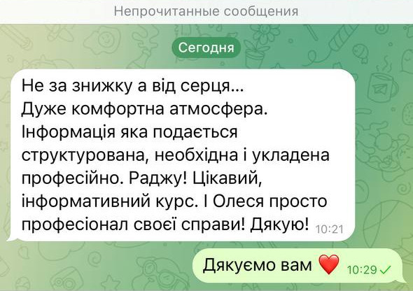 Зворотній зв’язок під час навчання та місяць по закінченню курсу